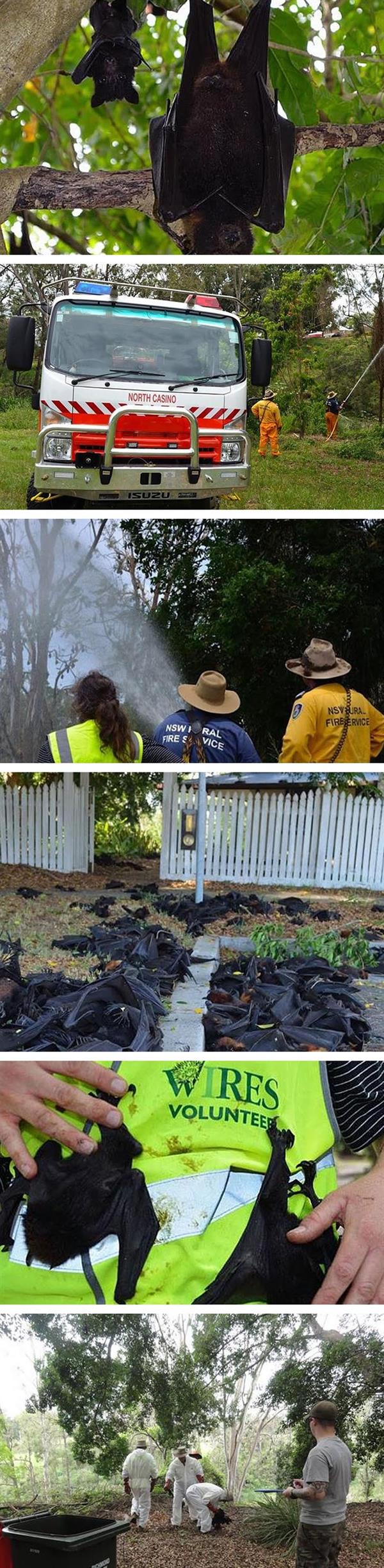 في واقعة غريبة من نوعها، سقط أكثر من 5 آلاف خفاش نافق من فوق أشجار الغابات الأسترالية، وتراكمت جثثهم في شوارع مدينة "كازينو" في ولاية "نيوساوث ويلز" الأسترالية.