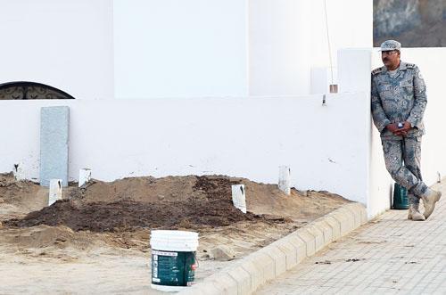 وجاءت الصورة للعقيد فهد منقرة وهو يلقي نظرة أخيرة على قبر رفيق دربه الفقيد البلوي بعد ارتحال جميع المشيعين عن المقبرة.