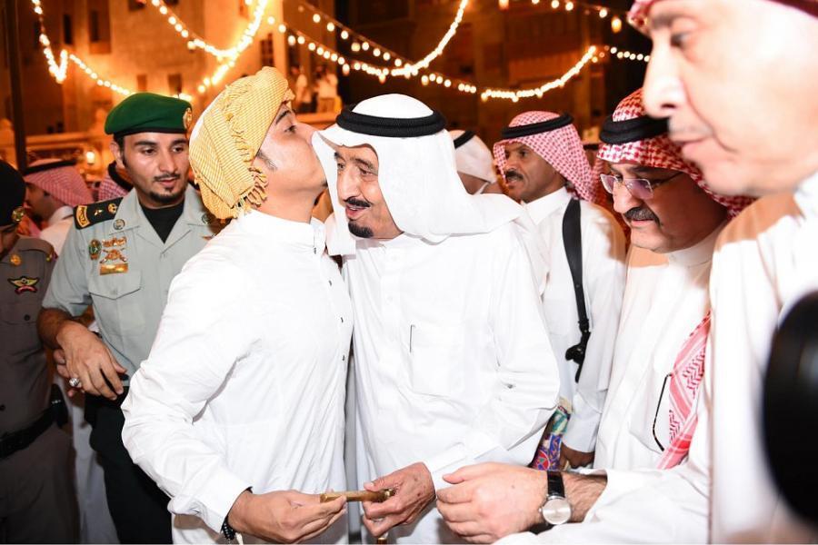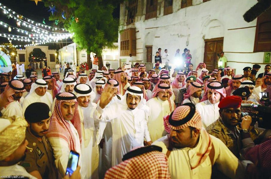 الملك سلمان يشارك الأطفال احتفالهم بالمنطقة التاريخية بجدة.