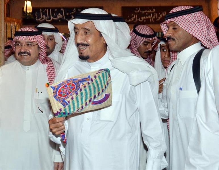 الملك سلمان يؤدي العرضة السعودية.