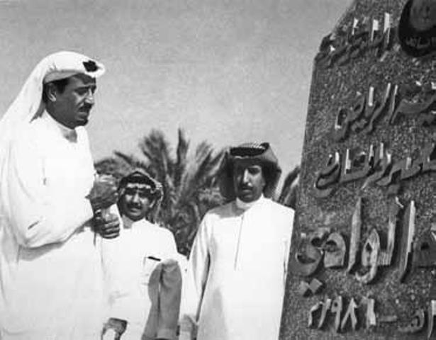 الملك سلمان أثناء توليه إمارة الرياض يفتتح أحد المشاريع.