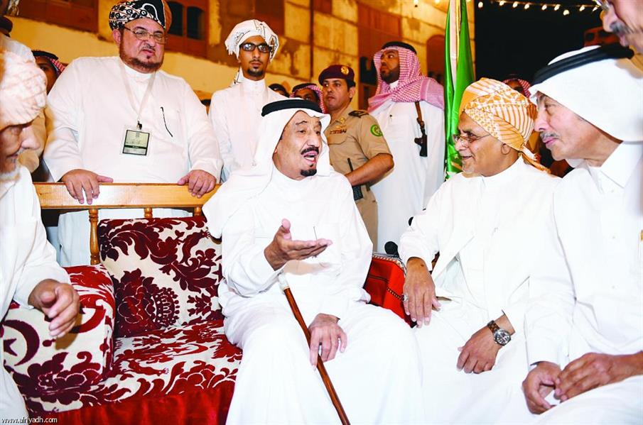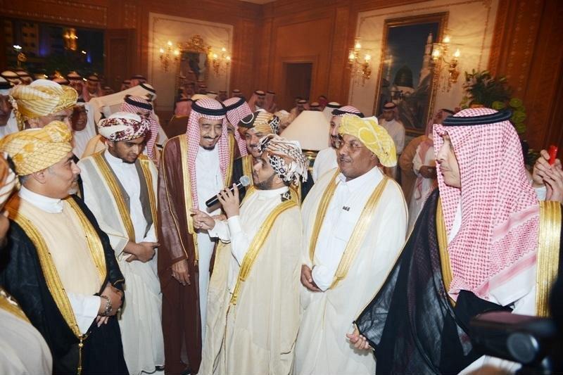 خادم الحرمين الشريفين لدى استقباله في احتفالية لإحدى القبائل.