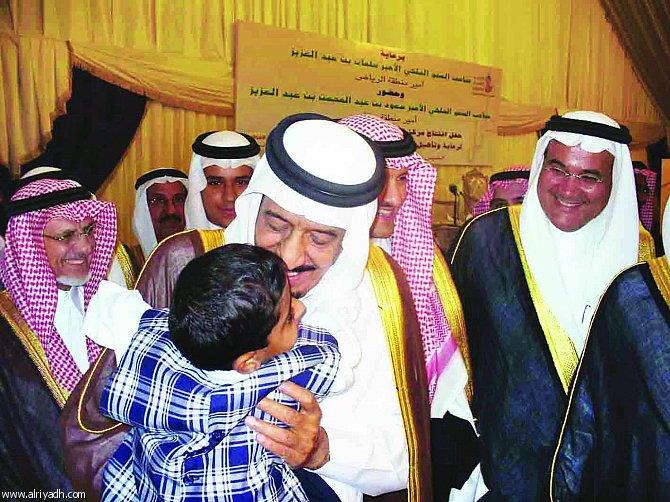 الملك سلمان يمازح أحد الأطفال من ذوي الاحتياجات الخاصة.