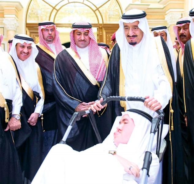 عُرف عن الملك سلمان بن عبدالعزيز عنايته بالعمل الخيري ورعايته لذوي الاحتياجات الخاصة، وهذه صورة له وهو يدفع عربة "عمار بوقس" أحد أشهر متحدي الإعاقة في المملكة.