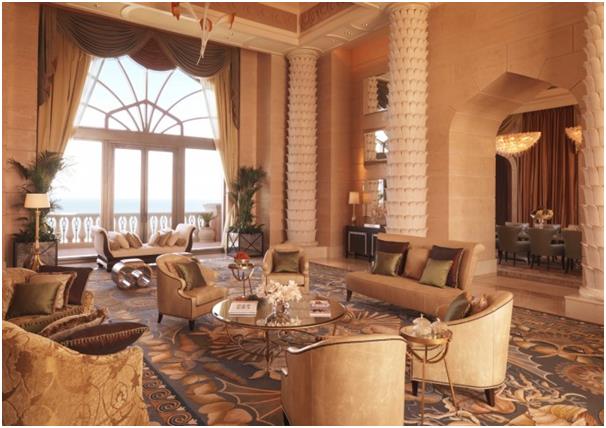 الجناح الملكي بفندق برج العرب بدبي، ويصل سعر الليلة الواحدة فيه إلى 19 ألف دولار، ويحتوي هذا الجناح على مصعد خاص، وغرفة طعام وغرفتين كبيرتين لتغيير الملابس ، كما يحتوي على حمامين رئيسيين، كل منهما مجهز بحوض جاكوزي، وخمس كبائن استحمام منفصلة، إضافة إلى احتوائه على جهاز "آيباد" ذهب عيار 24 قيراطًا.