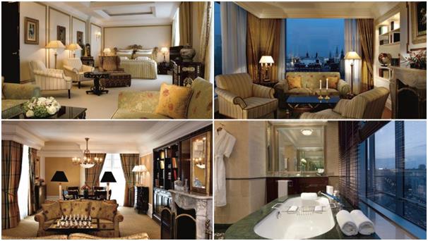 جناح فندق "ريتز كارلتون" في العاصمة الروسية - موسكو، ويسمح بإطلالة على الكرملين والميدان الأحمر وكاتدرائية القديس "باسيل"، ويتكون هذا الجناح من غرفة معيشة واسعة، ومساحة مخصصة لتناول الطعام، ومكتبة وقاعة اجتماعات، ويصل سعر الليلة فيه إلى 18 ألف دولار.