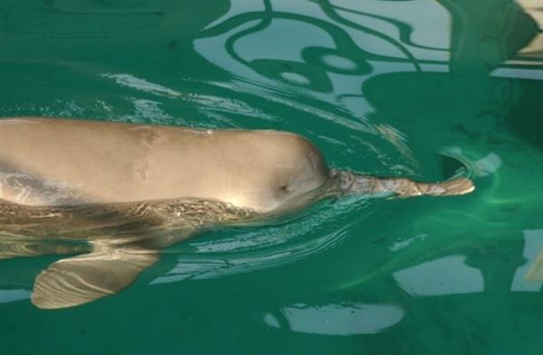 "باجي" "Bajji" هو أحد أنواع الدلافين، الذي لا يتبقى منه في العالم سوى 20 دولفينا فحسب، يتميز بميل وانحناء في جسده، كما أن زعنفته الظهرية صغيرة، أما باقي زعانفه فواسعة وناعمة، يغطي ظهره اللون الرمادي، كما تمتد شرائط بيضاء من ناحية البطن إلى الوجه والرأس، وإناث هذا الدولفين أكبر حجمًا من الذكور.