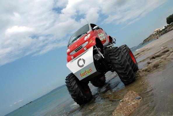 صُممت سيارة "Smart Monster Truck" كمزيج بين الشاحنات العملاقة و السيارات الصغيرة حتى تبدو قوية ويمكن في ذات الوقت وضعها بسهولة في أماكن وقوف السيارات.