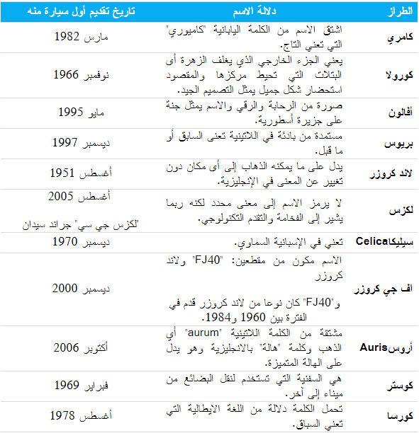 لا تمثل "تويوتا" هذا فحسب بل إنها بمثابة "قوى ناعمة" للثقافة والحضارة اليابانية، فالاسم له مدلول، وكذلك شعارها وأسماء طرازاتها، فيما يحاول التقرير التالي إلقاء نظرة على الشركة من تلك الزاوية التي قد لا يعلمها الكثير من عشاقها.