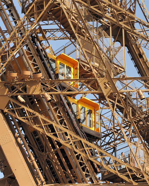 للوصول إلى قمة برج إيفل في فرنسا، يجب على الزوار أولاً ركوب مصعد إلى الطابق الأول، وهو ليس مصعدًا رأسيًا تقليديًا، وبداية من الطابق الثاني يتجه الزائرون إلى قمة البرج عبر مصعد رأسي تقليدي.
