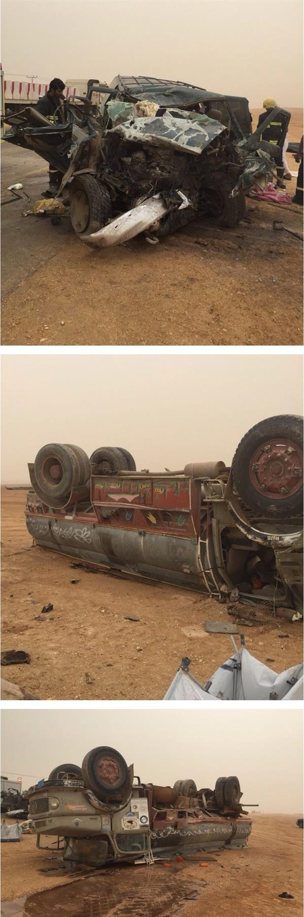 لقي ستة أشخاص مصرعهم واصيب 4 في حادث مروري وقع ظهر اليوم جنوب اﻷفلاج بعد بإرتطام مركبة مسافرين بصهريج مياه بالقرب من أحد محطات الوقود جنوب البديع وأسفر الحادث عن وفاة ستة اشخاص واصيب اثنين جراء الحادث اﻷليم