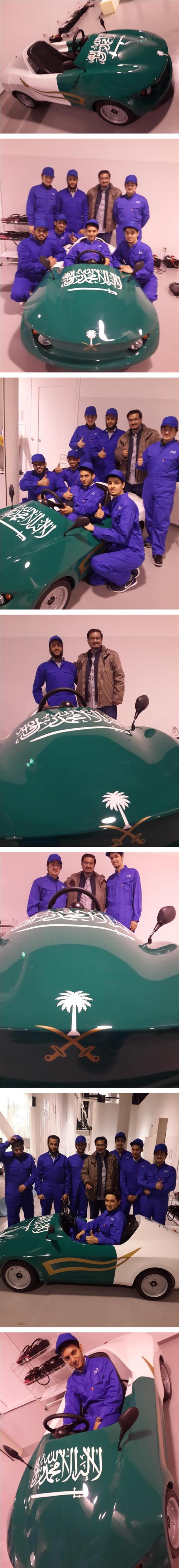 نشر الإعلامي عبدالعزيز قاسم على حسابه بـ"تويتر" صوراً لمجموعة من الشباب السعوديين المبتعثين للدراسة في اليابان أثناء عرضهم لنموذج سيارة كهربائية قاموا بتصميمها بالكامل.