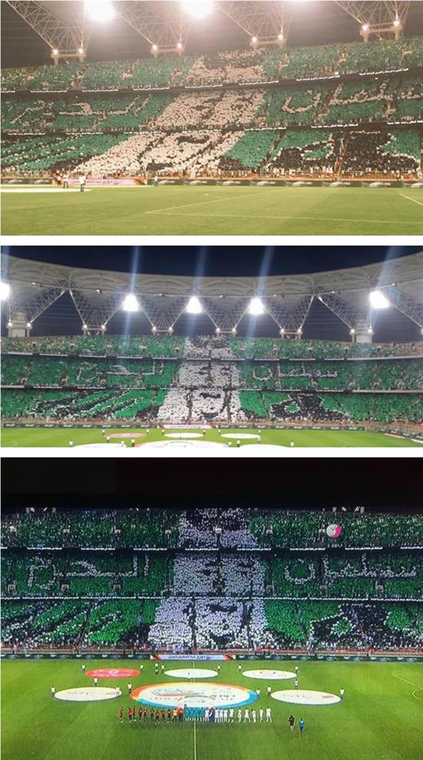 زينت جماهير النادي الأهلي مدرجات ملعب مدينة الملك عبدالله الرياضية بجدة بـ "تيفو" خاص حمل عنوان "سلمان الحزم" في مباراة الفريق الكروي الأول أمام الرائد التي تقام ضمن مباريات الجولة الـ 21 من دوري عبداللطيف جميل.