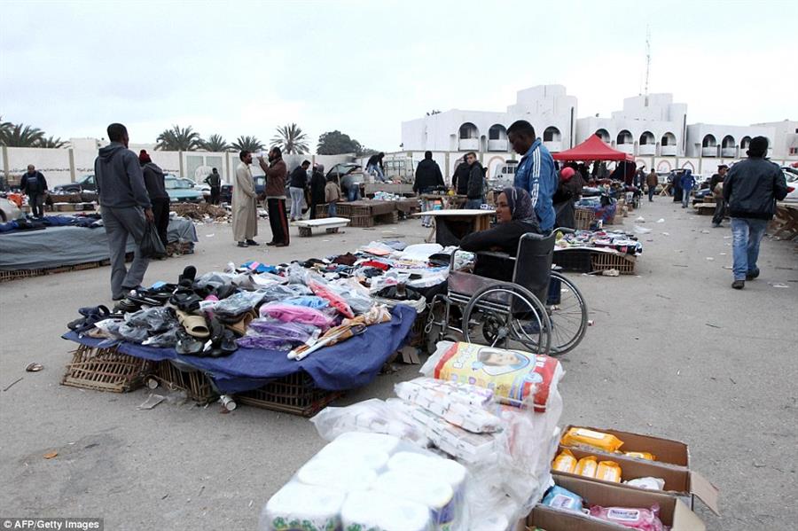 موقع قصر القذافي الرئاسي في مدينة بنغازي الليبية تحول الآن إلى سوق شعبي، تباع فيه الملابس والحيوانات الأليفة
