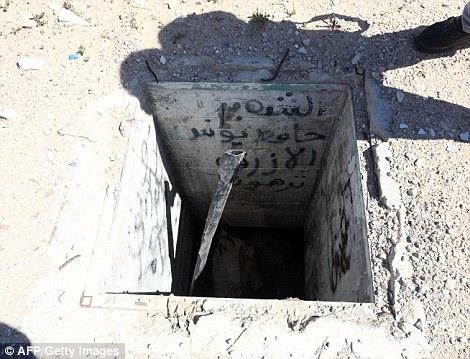 أحد مداخل الأنفاق السرية التي حفرت تحت القصر الرئاسي الليبي والتي تؤدي لشبكة كبيرة من الأنفاق لتستخدم وقت الطوارئ