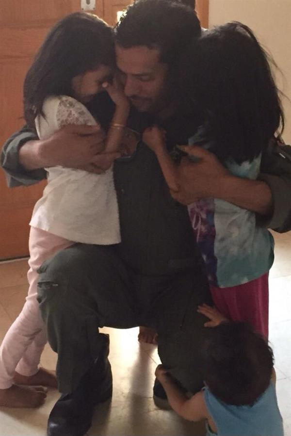حظيت صورة لأحد طياري قوات تحالف "عاصفة الحزم" ظهر خلالها وهو يحتضن طفلتيه أثناء وداعهما قبيل انطلاقه للمشاركة في الغارات بتداول لافت بين مرتادي مواقع التواصل الاجتماعي.