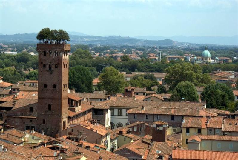 يمثل البرج علامة بارزة في وسط بلدة لوكا الإيطالية، وخاصة مع الأشجار الخضراء المنتشرة في سطحه والتي تمت زراعتها بواسطة عائلة "Guinigi" في أواخر القرن الرابع عشر.