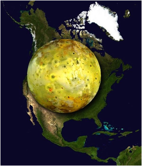 يتميز قمر "آيو" أحد أقمار كوكب المشترى ببراكينه النشطة التي تبلغ أكثر من 400 بركان، وبالمقارنة مع أمريكا الشمالية فأن القارة تحتوي على نحو 100 بركان نشط.