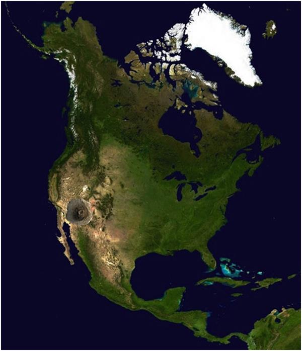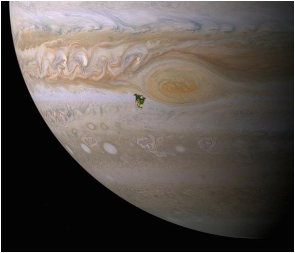 تلك البقعة المركبة فوق صورة لكوكب المشترى، هي أمريكا الشمالية، وتظهر الصورة كوكب المشترى الضخم يبتلع القارة بأكملها.