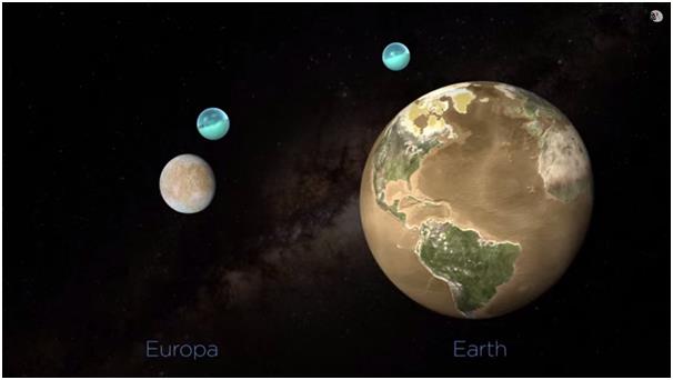 على الرغم من أن قمر أوروبا أحد أقمار كوكب المشترى، أصغر أربع مرات من مساحة كوكب الأرض، إلا أن العلماء يعتقدون أن هذا القمر يحتوي على مياه أكثر من تلك الموجودة في محيطات الأرض كلها، حيث أن محتوى الماء في قمر أوروبا أكبر 300 ميلاً من كل المياه الموجودة على سطح الأرض.