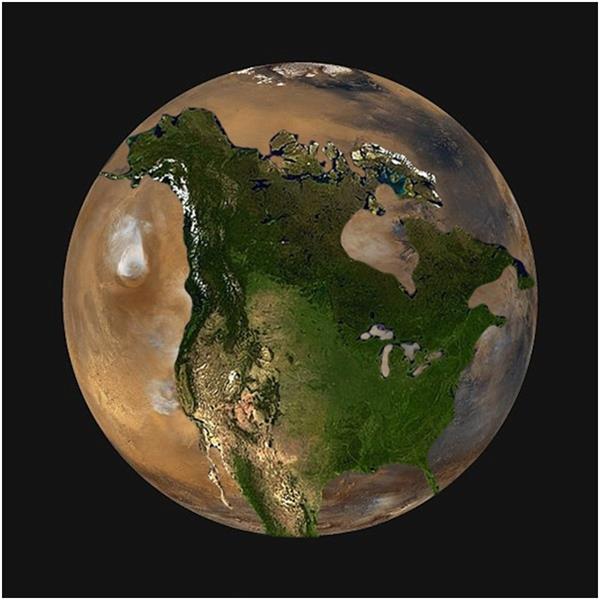 يمكن أن يصبح المريخ وطنًا ثانيًا للبشرية، لكن حجمه يبلغ أكثر من نصف حجم الأرض بقليل، حيث تظهر الصورة قارة أمريكا الشمالية وهي تناسب بالكاد نصف كوكب المريخ.