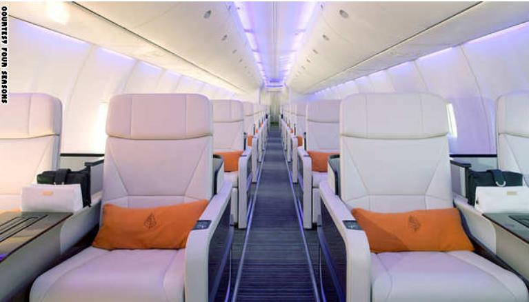 نشرت "سي إن إن" تقريرا عن طائرة "فور سيزونز" الخاصة التي صممت لتقدم خدمة الفندق الطائر مشتملة على وسائل رفاهية وراحة كبيرة.