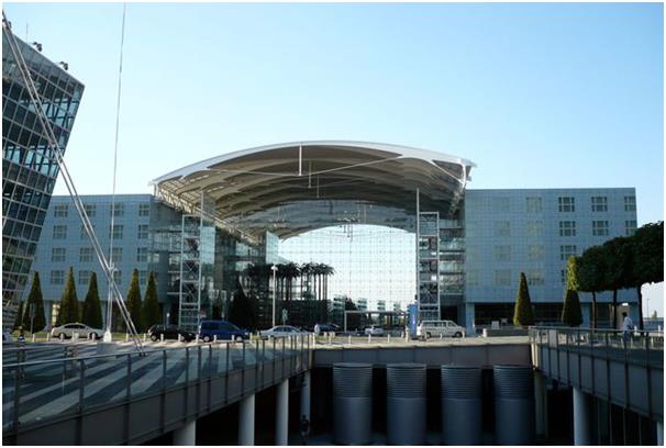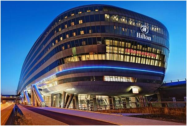 يقع فندق هيلتون ميونخ بين مبنى الركاب الأول والثاني في مطار ميونخ، ويتميز بواجهة زجاجية.