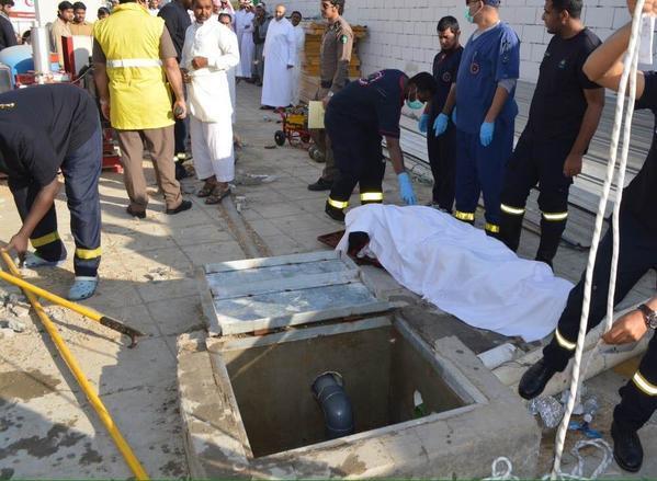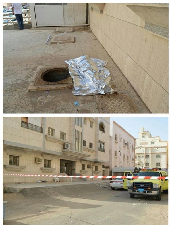 14/3/2014 انتشل الدفاع المدني جثة طفل يبلغ من العمر 8 سنوات من خزان للصرف الصحي بحي النسيم في جدة.