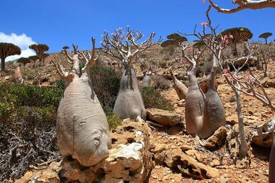 8- جزيرة سقرطة – اليمن:- وهي أرخبيل يمني مكون من أربع جزر على المحيط الهندي قبالة سواحل القرن الأفريقي بالقرب من خليج عدن باليمن، وتقع على بعد 200 كيلومتر جنوب شبه الجزيرة العربية. وتقع في موقع استثنائي من حيث التنوع الكبير في النباتات، كما أن 40% من أنواع النباتات في الجزيرة لا توجد في أي مكان آخر على سطح الأرض.
