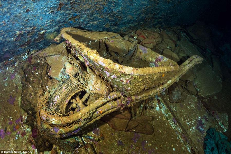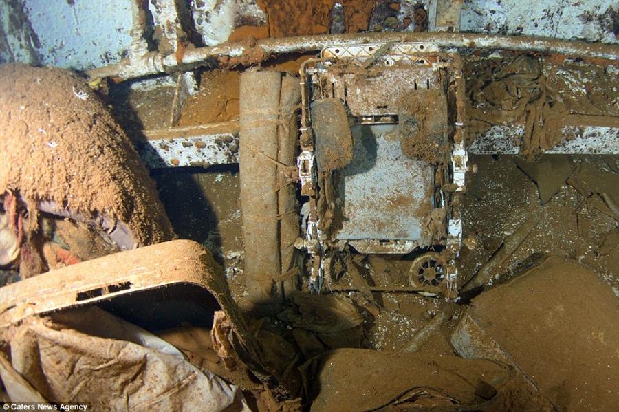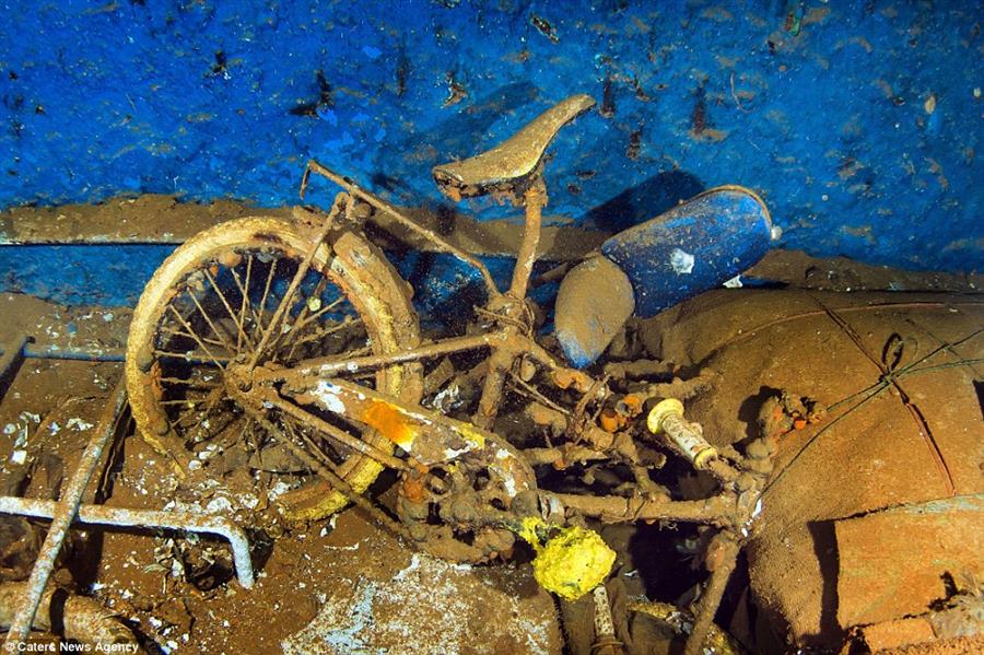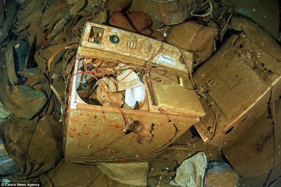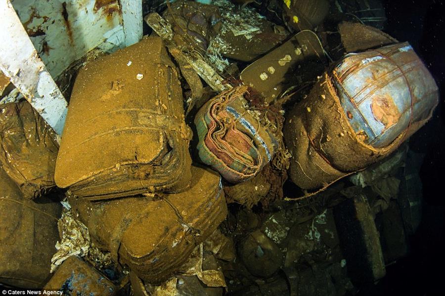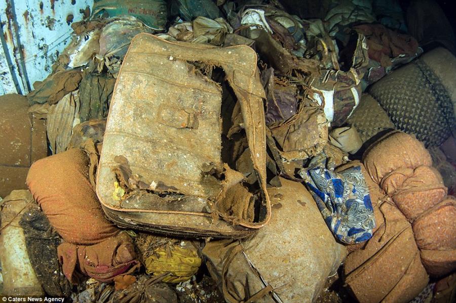 6- لا تزال حقائب وأغراض أخرى كثيرة على حالها لم تفتح برغم تلك السنوات منذ غرق السفينة بعد حدوث شقوق في جوانبها وسقوطها في قاع البحر
