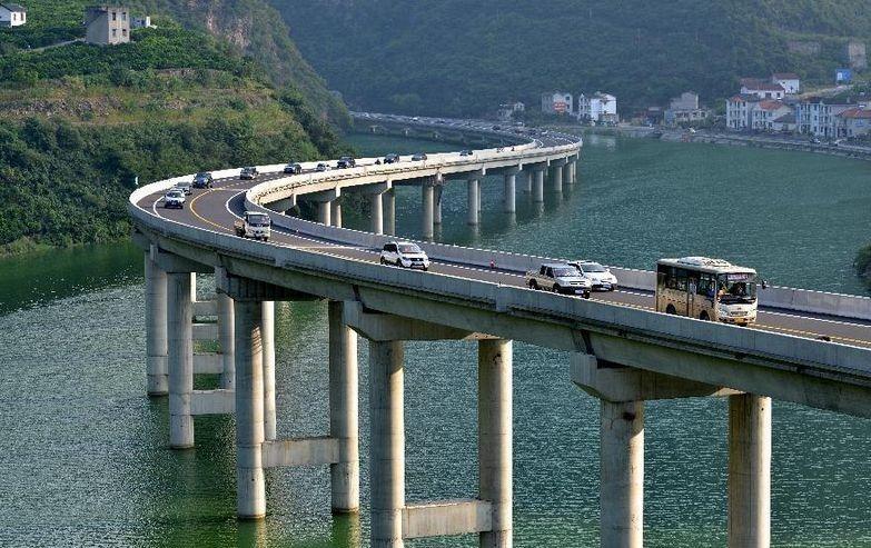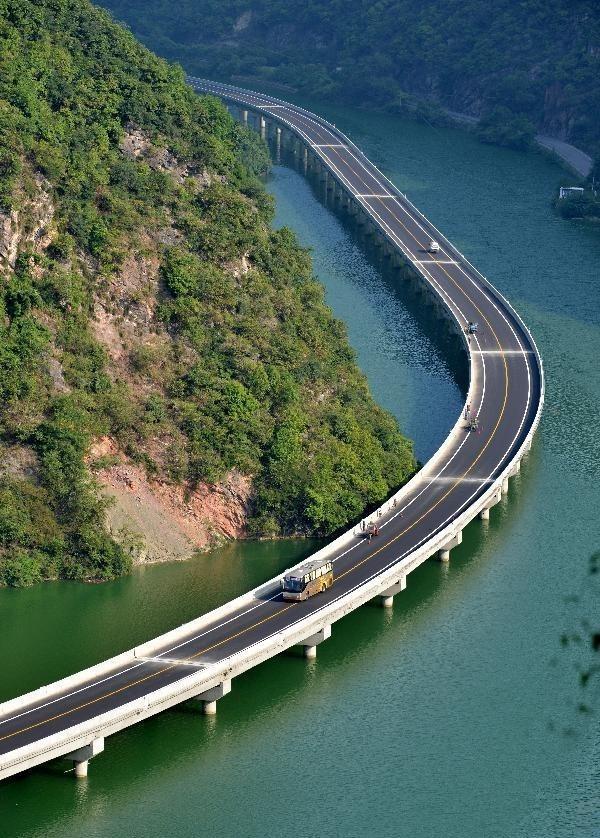 فتحت الصين مؤخرا طريقا سريعا يربط محافظة زينغشانغ بجسر زاوجون فى مقاطعة هوبى بوسط الصين. يبلغ طول الطريق 10 كيلو مترا 4 كيلومترا منه بني فوق المياه على طول النهر.