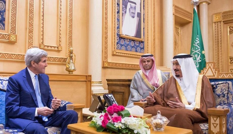 خادم الحرمين الشريفين الملك سلمان بن عبدالعزيز يستقبل في قصر العوجا بالدرعية وزير الخارجية الأمريكي جون كيري، حيث جرى خلال الاستقبال مناقشة مجمل الأحداث التي تشهدها المنطقة، خاصة ما يتعلق بالأراضي الفلسطينية والاعتداءات الإسرائيلية المتكررة، بالإضافة إلى تطورات الأوضاع على الساحة السورية.