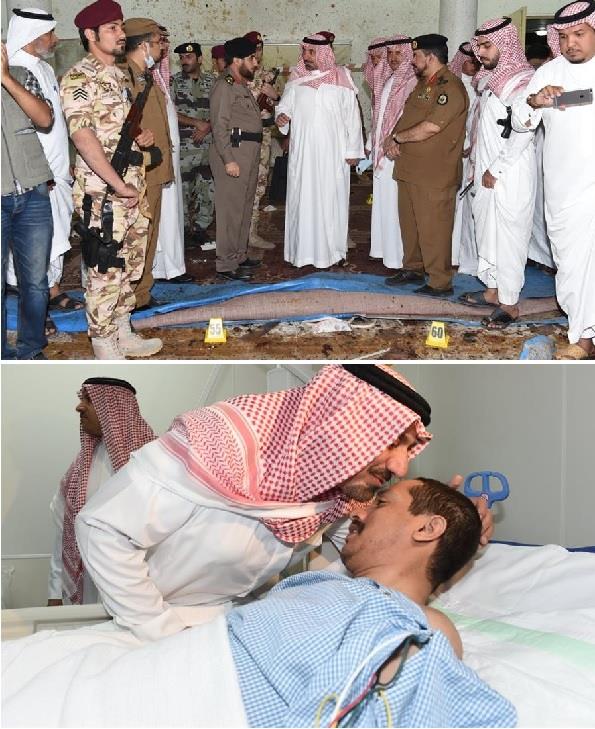 الأمير جلوي بن عبدالعزيز بن مساعد، أمير منطقة نجران، يتفقد مسجد المشهد بحي دحضة في نجران، عقب التفجير الإرهابي الذي استهدف المصلين عقب صلاة المغرب، ويقف على آثار التفجير، كما زار المصابين في المستشفى.