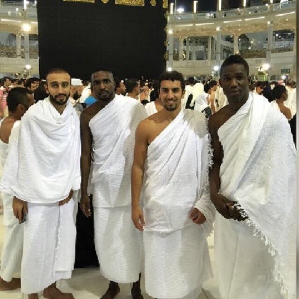 عدد من لاعبي نادي النصر أثناء أدائهم مناسك العمرة في مكة المكرمة، بعد المباراة التي جمعت فريقهم بفريق الوحدة، وانتهت بفوز النصر.