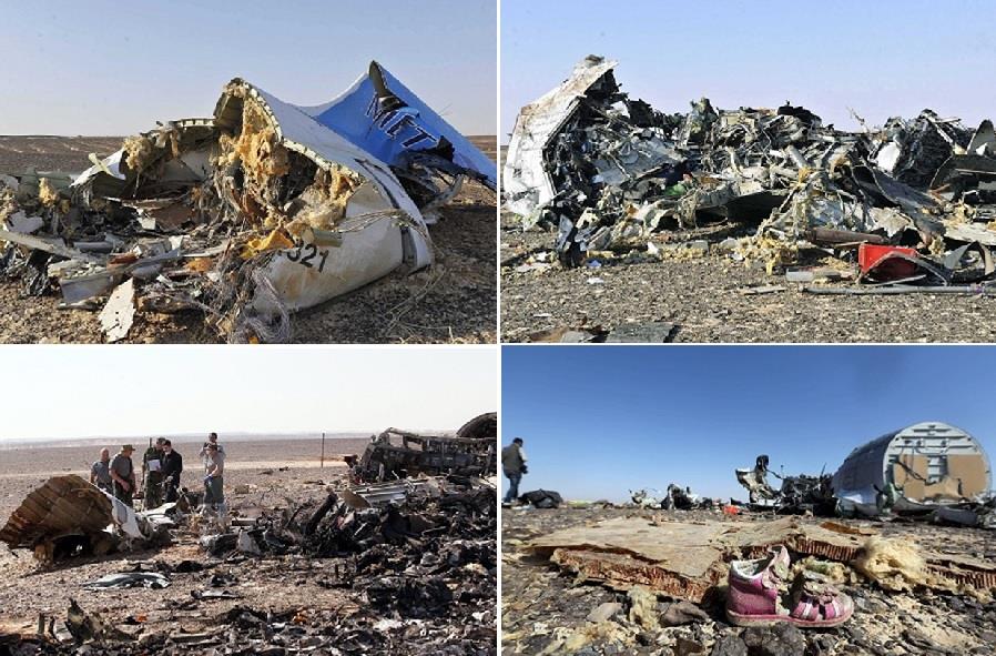 صور لحادث سقوط طائرة الركاب الروسية فوق شبه جزيرة سيناء، والتي قتل جميع ركابها وعددهم 217 مع أفراد الطاقم الـ 7، وذلك بعد 23 دقيقة من إقلاعها من مطار شرم الشيخ.