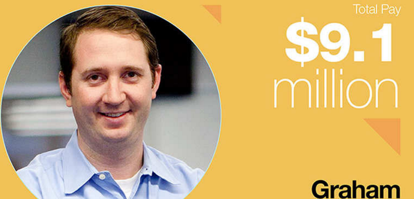 الثروة الكلية: 12.3 مليون دولار، مقسمة كالتالي: التعويضات أو البدلات المالية: 1 مليون دولار الأسهم والمكافآت: 11.3 مليون دولار.