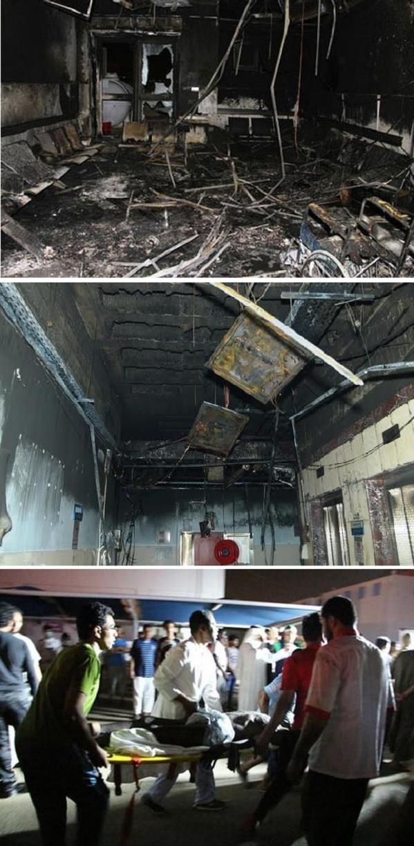 صور حريق مستشفى جازان العام حيث توفي 25 شخصاً بينهم طفل، وأصيب 123 آخرون، بينهم 4 من رجال الدفاع المدني، بسبب تماس كهربائي، واندلع الحريق بالدور الأول بقسم العناية المركزة والنساء والولادة والحضانة، حيث باشرت 21 فرقة إطفاء وإنقاذ وإسعاف موقع الحادث.