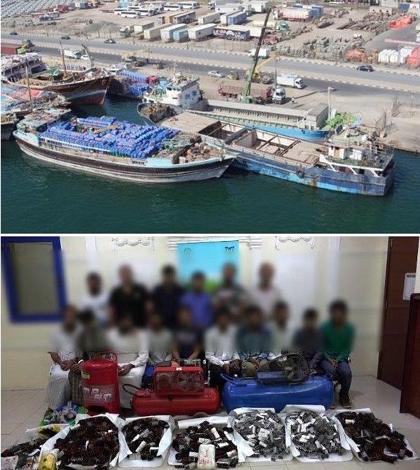 وزارة الداخلية الإماراتية تضبط باخرة إيرانية كانت تنوي تهريب أشخاص إلى داخل الإمارات، كما عُثر بداخل الباخرة على كمية كبيرة من المواد المخدرة، اعترف القبطان بأنه كان ينوي تسليمها لتجار لترويجها داخل الإمارات.
