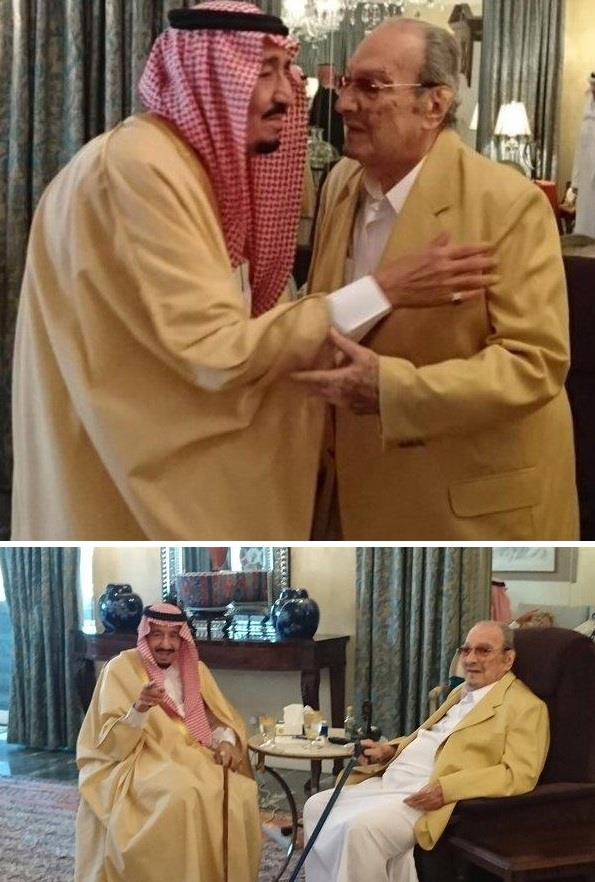 خادم الحرمين الشريفين الملك سلمان بن عبدالعزيز حفظه الله، يزور أخاه الأمير طلال بن عبدالعزيز في منزله، حيث استقبله ابنا الأمير طلال؛ الأمير خالد والأمير الوليد.