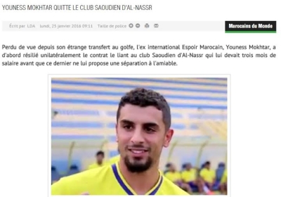 قالت صحيفة “lionsdelatlas” المغربية، الناطقة باللغة الفرنسية: إن اللاعب المغربي الدولي يونس مختار قد أنهى ارتباطه ودياً مع “النصر”، بعد أن اجتمع مع مسؤولي النادي، وتوصلوا لصيغة تفاهم قبل أن يلجأ أحد الطرفين إلى الفيفا؛ وبالتالي بات اللاعب حراً الآن.