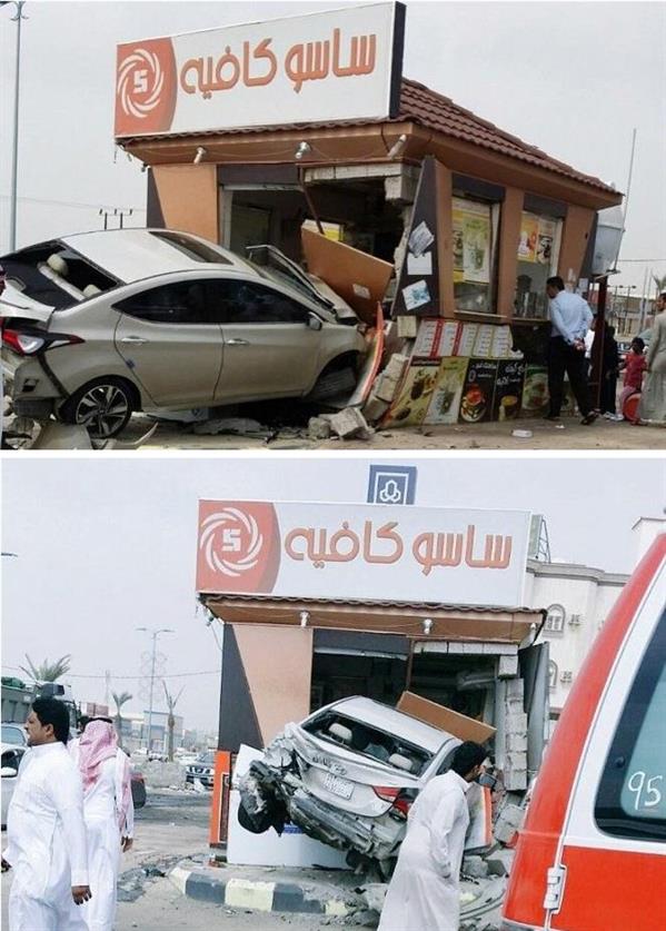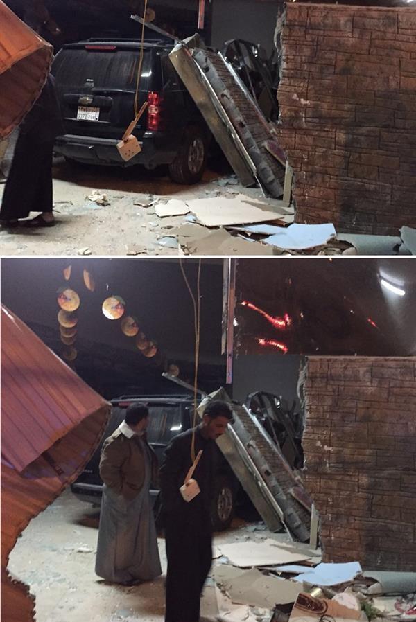 سيارة تقتحم مطعماً نسائياً في عرعر، حيث أصيب سائق السيارة بإصابات طفيفة، فيما لم تسجل أي إصابات داخل المطعم لخلو الدور السفلي من الزبائن، و تسبب الحادث في إحداث تلفيات داخل المطعم وفي الواجهة الخارجية.