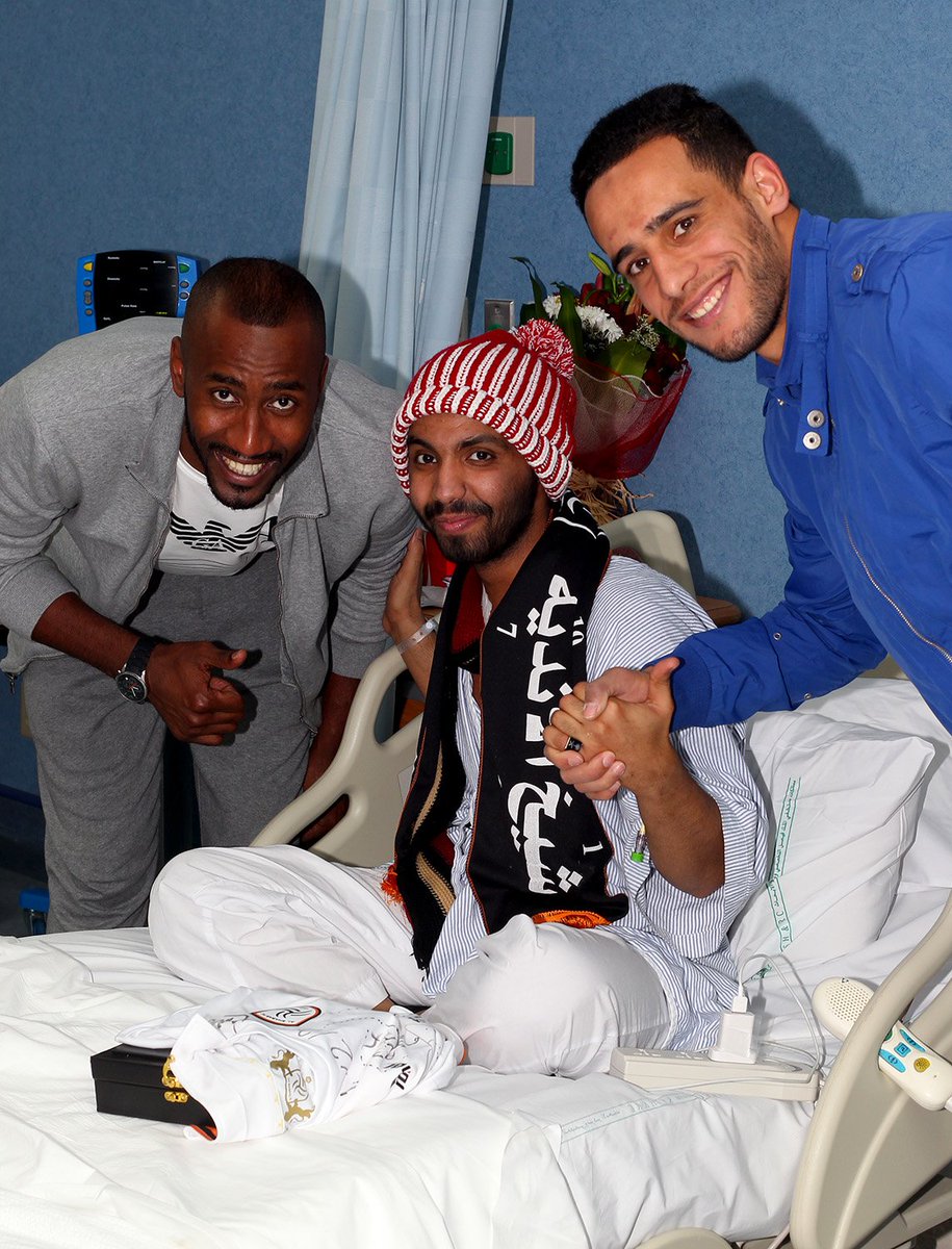 زار عدد من لاعبي الفريق الاول لكرة القدم بنادي الشباب المشجع الشبابي “عبدالله الشهراني” في احد المستشفيات في الرياض و قدم اللاعبون من خلال الزيارة قمصان الفريق و هدايا خاصة للمشجع .