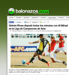 ذكرت صحيفة “balonazos” الفنزويلية أن مهاجم نادي الاتحاد، جيلمين ريفاس، سيكون على موعد مع مواجهة قوية يوم السبت المقبل أمام مواطنه خوان فالكون، مهاجم نادي الفتح؛ وذلك ضمن مباريات الجولة 19 من دوري جميل؛ موضحة أن ريفاس شارك بشكل كامل خلال مباراة فريقه بالأمس أمام لوكوموتيف الأوزبكي في بطولة دوري أبطال آسيا، والتي انتهت بالتعادل الإيجابي 1/1.