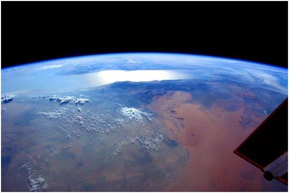 صورة ظاهرية للأرض من جهة منطقة حائل والمدينة المنورة والبحر الأحمر، وعلى الامتداد تظهر أجزاء من مصر.