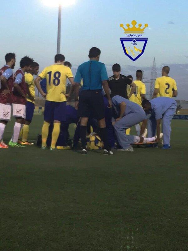 تعرض لاعب النصر السابق والدرعية حاليا سلمان البقمي لإصابة بالغة في مباراة فريقة الودية والتي جمعت الدرعية والنصر اليوم على ملعب الامير عبد الرحمن بن سعود بعد تدخل من لاعب النصر ماركينيوس.