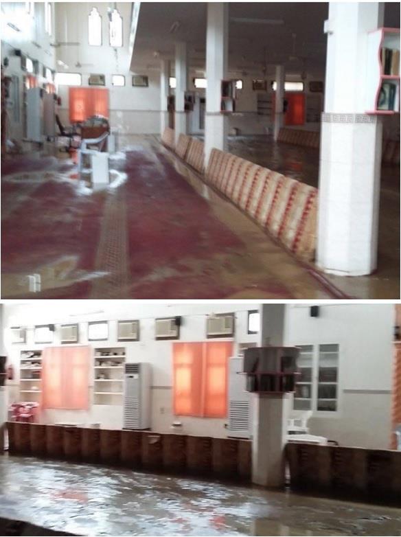 صور لمسجد السوق بمحافظة الداير بني مالك بجازان، وهو يمتلئ بمياه السيول والأمطار التي شهدتها المنطقة، محدثة أضراراً بداخله.