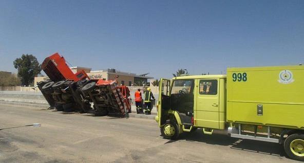 صورة رافعة من نوع "تدانو" أثناء سقوطها على أحد الطرق العامة في الطائف، ما نتج عنه إصابة عامل، نقل إلى المستشفى واستقرت حالته.