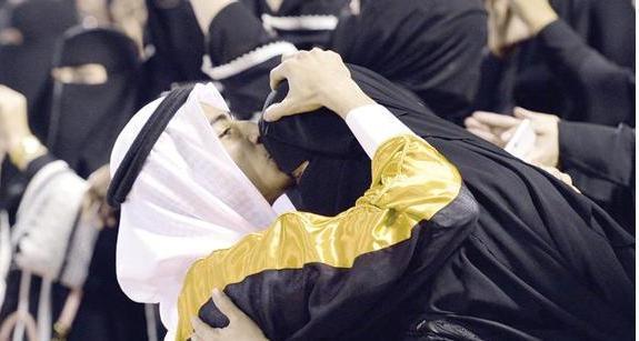 صورة شاب متخرج من جامعة الملك فهد للبترول وهو يقبل جبين أمه ويضع عقاله على رأسها، تقديرًا منه لما قدمته خلال مسيرته التعليمية حتى تخرجه.