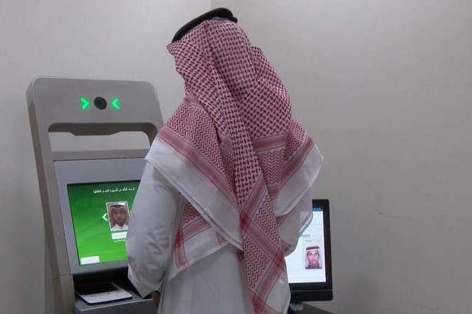 صور لجهاز خاص بالجوازات مصمم لاستقبال القادمين إلى المملكة عبر المطارات، ويمكن للمسافر أن ينهي إجراءاته في أقل من دقيقة دون الحاجة لمراجعة الموظف.