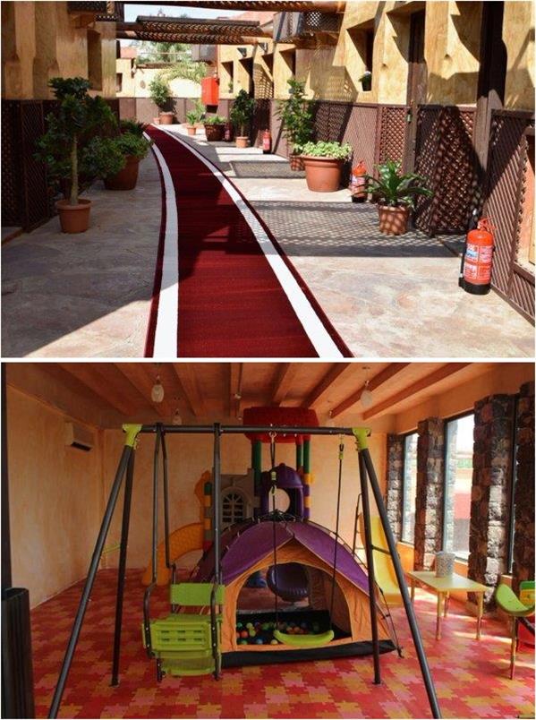 صور للبيت العائلي بسجن بريمان في جدة بعد تجديده، على طراز فندقي متميز، بغرفة نوم، وصالة جلوس، ومطبخًا ودورات مياه، وصالات ألعاب أطفال، وحدائق.